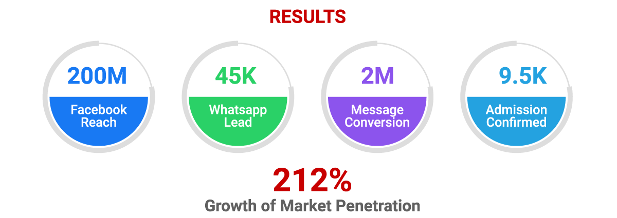 This social media marketing campaign received a huge response reaching more than 200 million people with total minutes viewed standing at 50 Million. The posts and video generated 43million engagements and 9500+ students confirmed, and most importantly, almost 1.5M unique message conversion.
